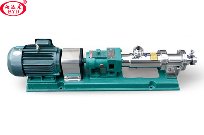 10、单螺杆泵的特殊形式:强制喂料螺杆泵,设有长方形料斗,连杆上设有螺旋推进器,适用于不能自流但含有液体的介质,输送类似渣液时,也可装搅动棒,以防沉淀。当渣液浓度较高时,增添能挤压粉碎的大漏斗,以防堵塞。泵可配各类驱动器,适于配三相齿轮减速电机。